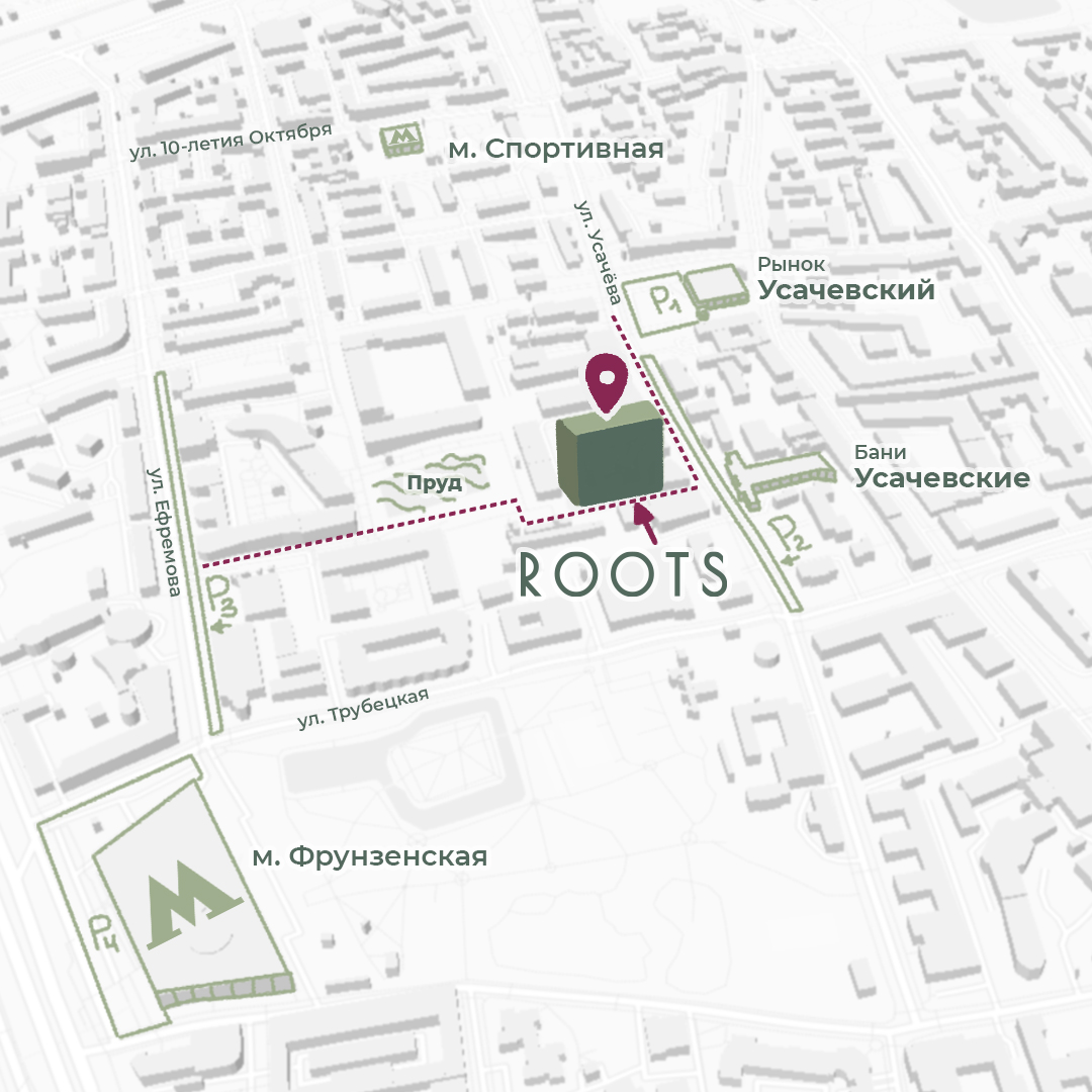 8-10 минут пешком до ROOTS